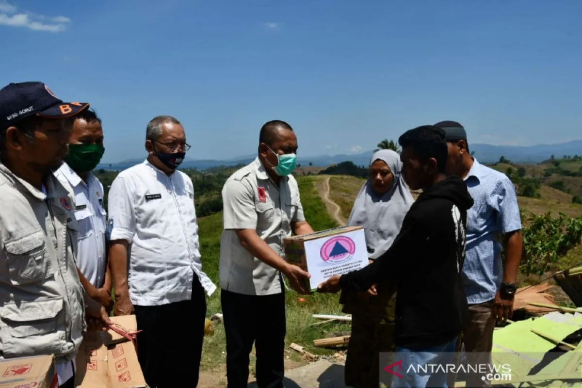 Sekda Gorontalo Utara, Ridwan Yasin, menyerahkan bantuan logistik kepada warga korban bencana angin kencang di Desa Putiana Kecamatan Anggrek. ANTARA/HO-Humas Pemkab Gorontalo Utara