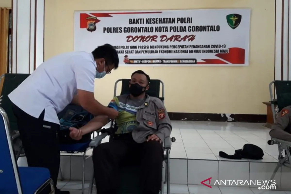 Kapolres Gorontalo Kota AKBP Suka Irawanto di Gorontalo, Rabu, mengatakan aksi donor darah tersebut sebagai bentuk kepedulian kepada sesama dan juga untuk menyambut Hari Bhayangkara ke-75.