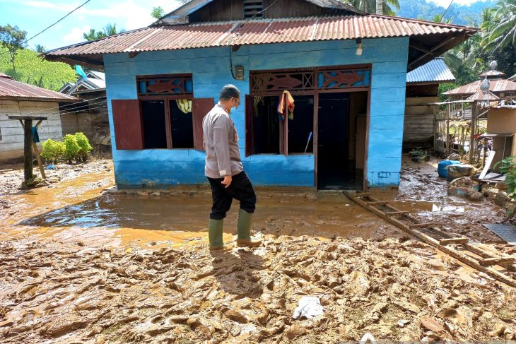 Kapolres Gorontalo Utara, AKBP Juprisan Pratama Ramadhan Nasution mengerahkan personel untuk membantu membersihkan permukiman warga terdampak banjir di Desa Huyula, Kecamatan Mootilango, Kabupaten Gorontalo. (ANTARA/HO-dok.Polres Gorontalo Utara)