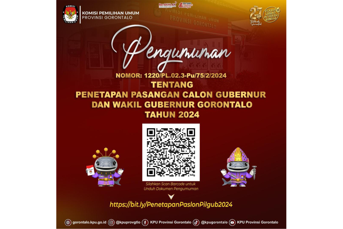 PENGUMUMAN KPU PROVINSI GORONTALO Senin, 23 September 2024 18:57 WIB PENGUMUMAN KPU PROVINSI GORONTALO Whatsapp facebook twitter email pinterest print