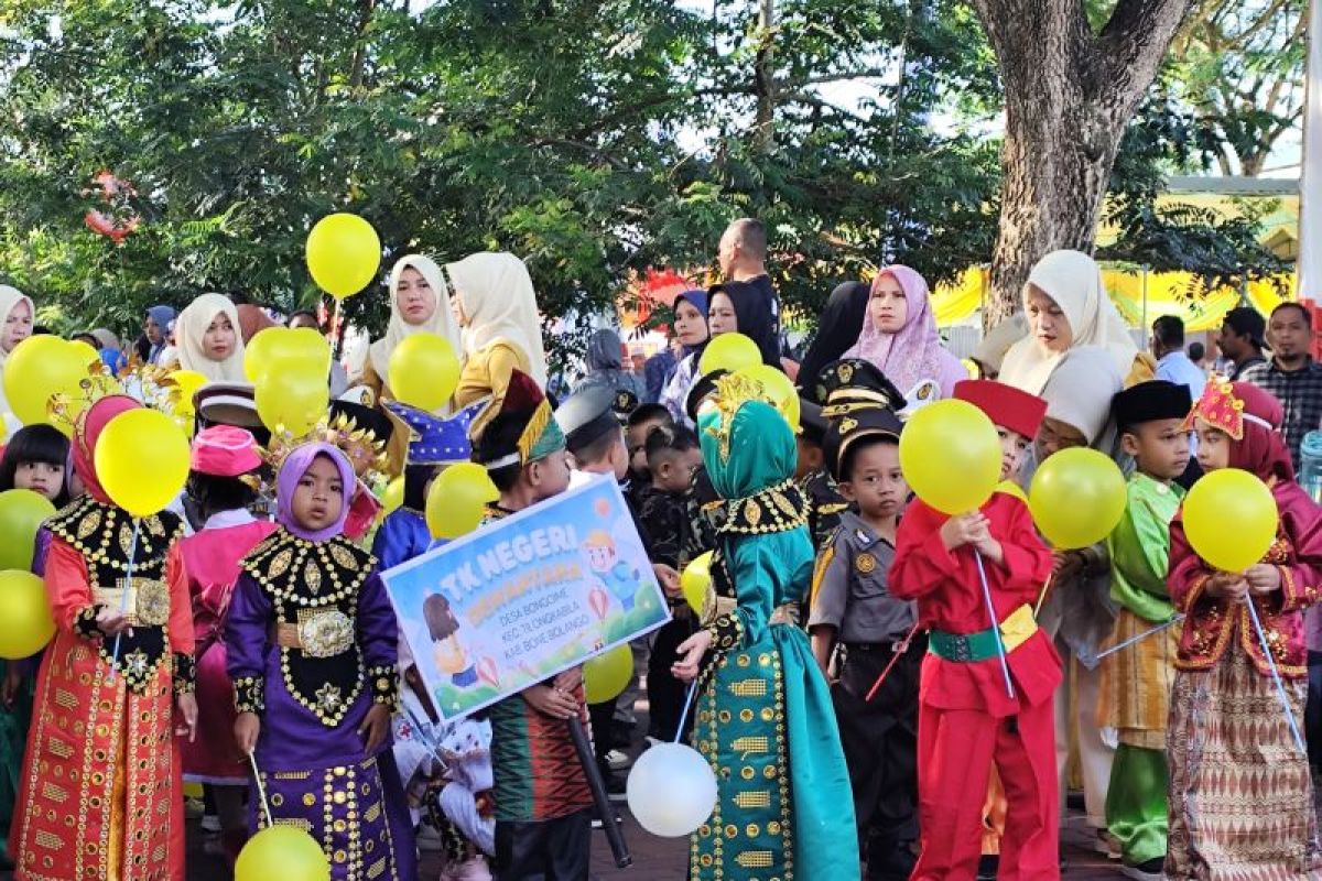 "Hari Anak Nasional kali ini dimeriahkan oleh pawai yang dilaksanakan dari seluruh pihak terkait khususnya anak-anak PAUD yang ada di Kabupaten Bone Bolango," ucap Bupati Bone Bolango Ismet Mile.