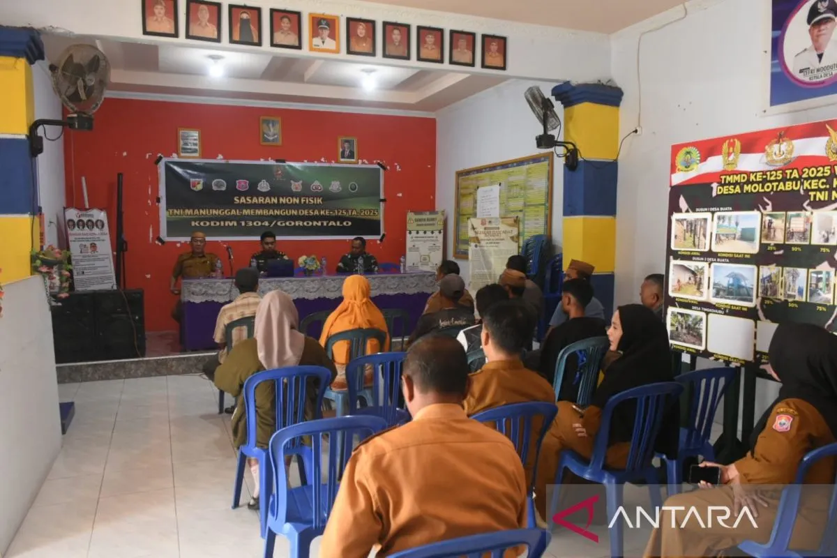 Kabupaten Bone Bolango (ANTARA) - Satuan Tugas (Satgas) TNI Manunggal Membangun Desa (TMMD) ke-125 Kodim 1304/Gorontalo menggelar kegiatan penyuluhan hukum bagi warga Desa Molotabu, Kecamatan Kabila Bone, Kabupaten Bone Bolango, Senin.