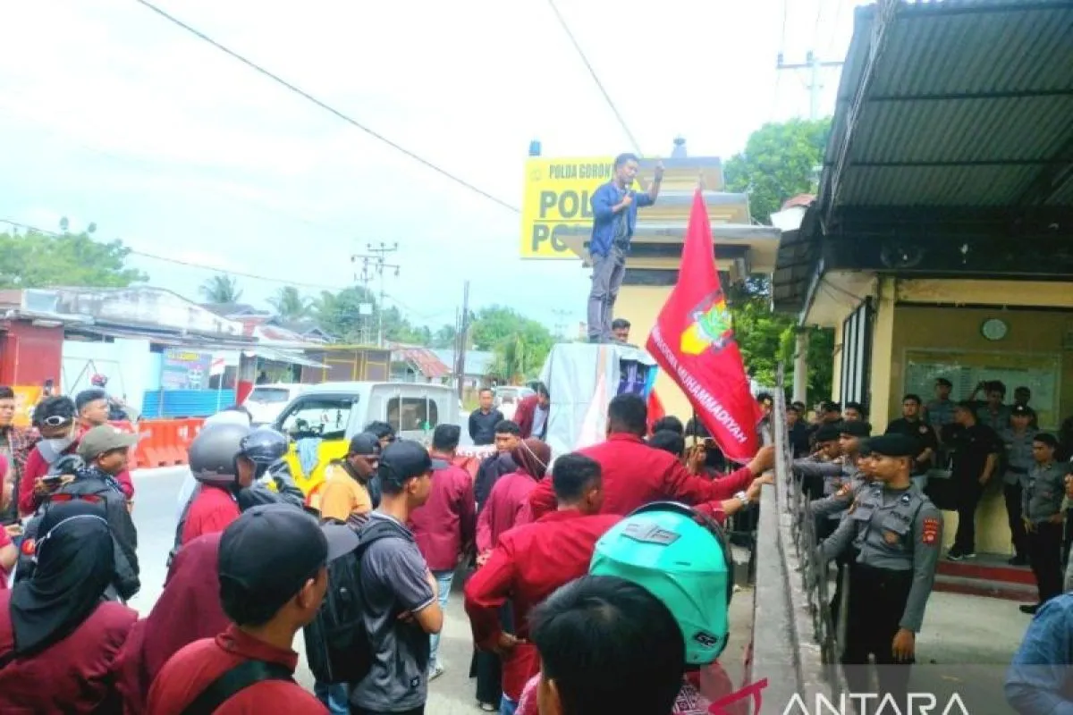 Gorontalo (ANTARA) - Para mahasiswa yang tergabung dalam Ikatan Mahasiswa Muhammadiyah (IMM) Gorontalo menggelar unjuk rasa di depan Polda Gorontalo meminta kepolisian membebaskan rekan mereka, yang ditangkap saat bentrok di kawasan Simpang Lima Kota Gorontalo.