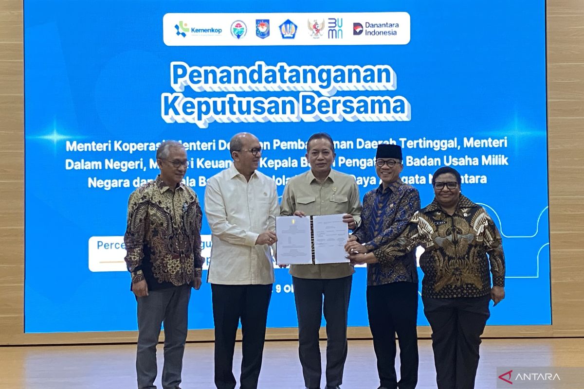 Penandatanganan keputusan bersama dilakukan antara Kementerian Koperasi (Kemenkop), Kementerian Dalam Negeri, Menteri Desa dan Pembangunan Daerah Tertinggal, Kementerian Keuangan, dan Badan Pengelola Investasi (BPI) Danantara, di Kantor Kemenkop, Jakarta, Kamis.
