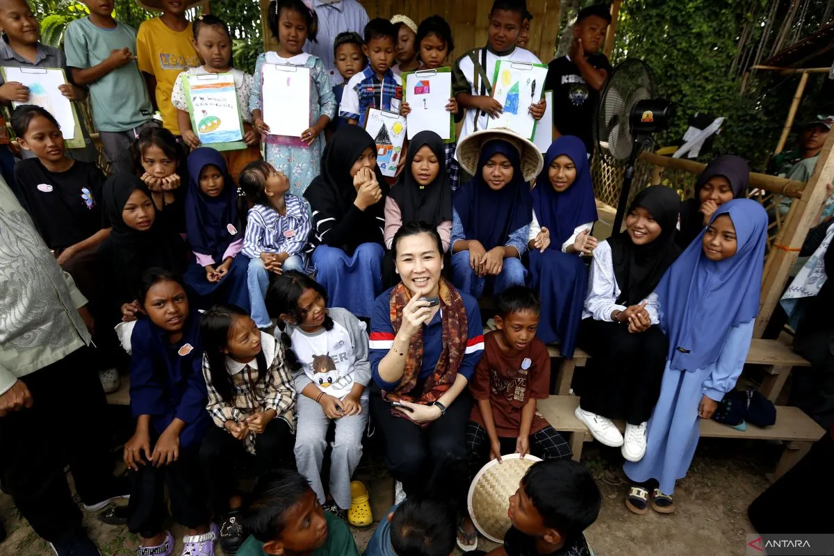 Pada kunjungan itu Wamen Veronica Tan berinteraksi langsung dengan anak-anak yang belajar di ruang terbuka dengan konsep pembelajaran yang tidak hanya berfokus pada teori, tetapi juga praktik lapangan.