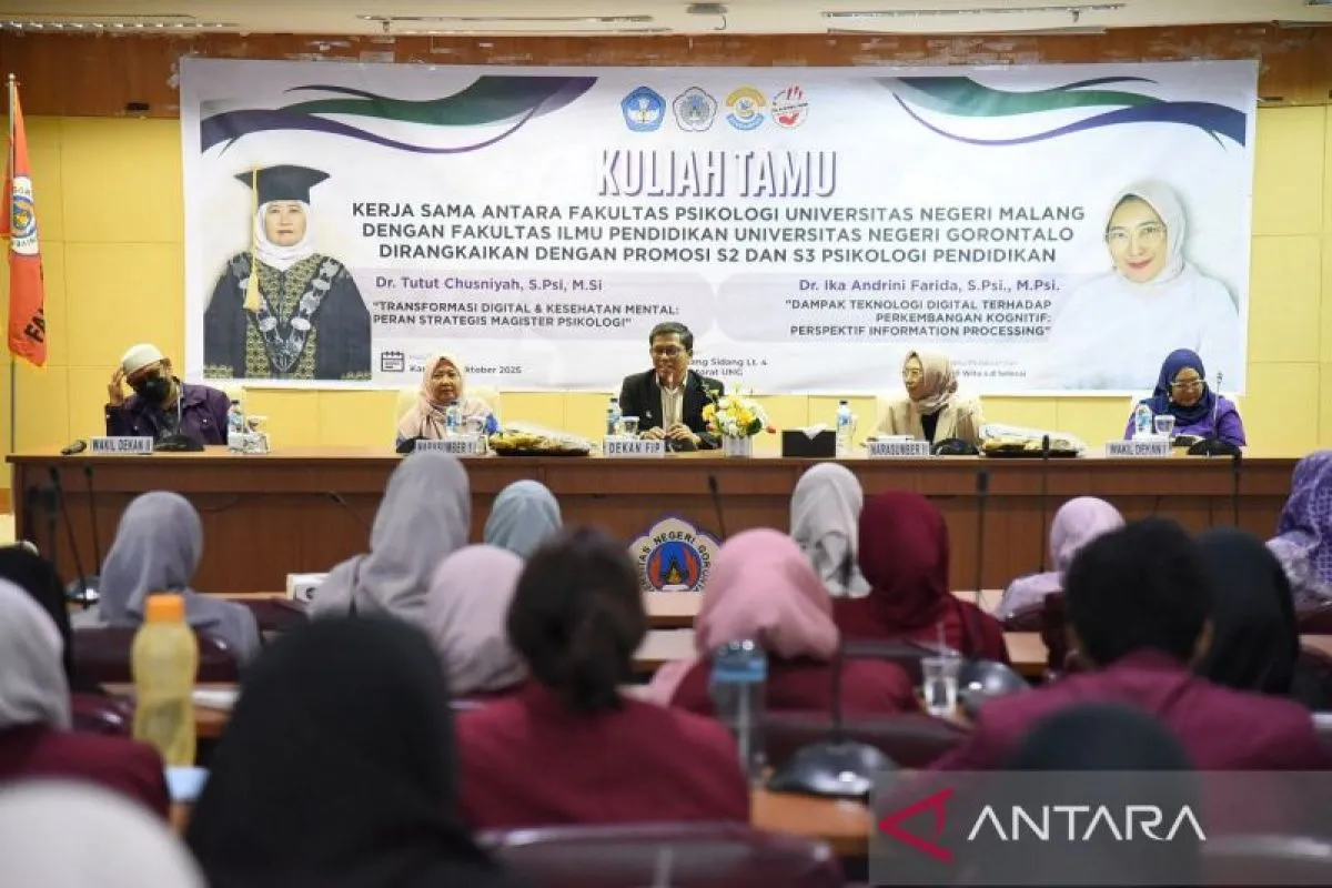 Gorontalo (ANTARA) - Dalam upaya memperluas wawasan dan memperkaya pengetahuan mahasiswa di bidang ilmu psikologi, Program Studi Psikologi Fakultas Ilmu Pendidikan UNG menjalin kolaborasi akademik dengan Fakultas Psikologi Universitas Negeri Malang (UM). Kolaborasi tersebut diwujudkan melalui kegiatan kuliah tamu yang digelar pada Kamis (23/10), menghadirkan dua narasumber ahli dari UM untuk berbagi ilmu dan pengalaman akademik kepada mahasiswa Psikologi UNG.