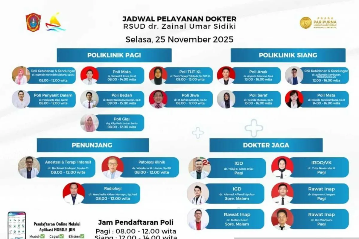Gorontalo Utara (ANTARA) - Tujuh poliklinik rawat jalan dibuka pihak Rumah Sakit Umum Daerah (RSUD) Zainal Umar Sidiki Gorontalo Utara, Provinsi Gorontalo, pada Selasa pagi (25/11/2025).