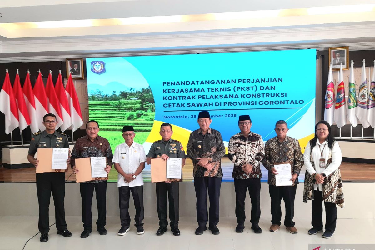 Gubernur Gorontalo Gusnar Ismail di Gorontalo, Jumat mengatakan komitmen tersebut ditunjukkan melalui penandatanganan Perjanjian Kerja Sama Teknis (PKST) dan kontrak pelaksana konstruksi cetak sawah antara Dinas Pertanian Provinsi Gorontalo dengan Korem 132 Nani Wartabone.