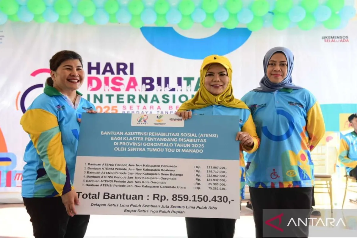 Total bantuan Atensi yang disalurkan Sentra Tumou Tou Manado di Provinsi Gorontalo mencapai Rp859 juta.