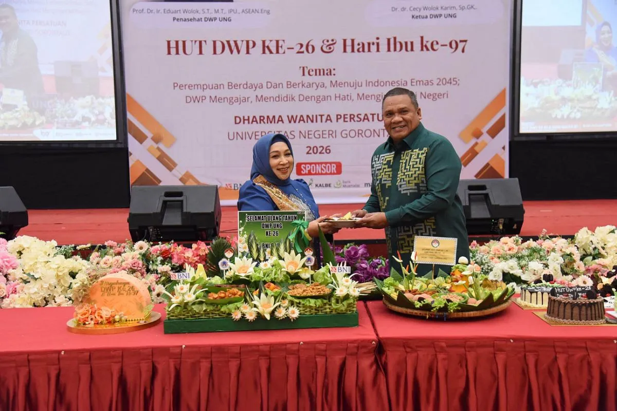 Gorontalo (ANTARA) - Ballroom Grand Palace Convention Centre (GPCC) menjadi saksi kemeriahan puncak perayaan Hari Ulang Tahun (HUT) Dharma Wanita Persatuan (DWP) ke-26 yang dirangkaikan dengan peringatan Hari Ibu ke-97 pada Senin (12/1/2026). Acara yang berlangsung khidmat ini menjadi momentum bagi para perempuan hebat di lingkungan Universitas Negeri Gorontalo (UNG) untuk memperkuat peran dalam mendukung visi universitas maupun pembangunan nasional.