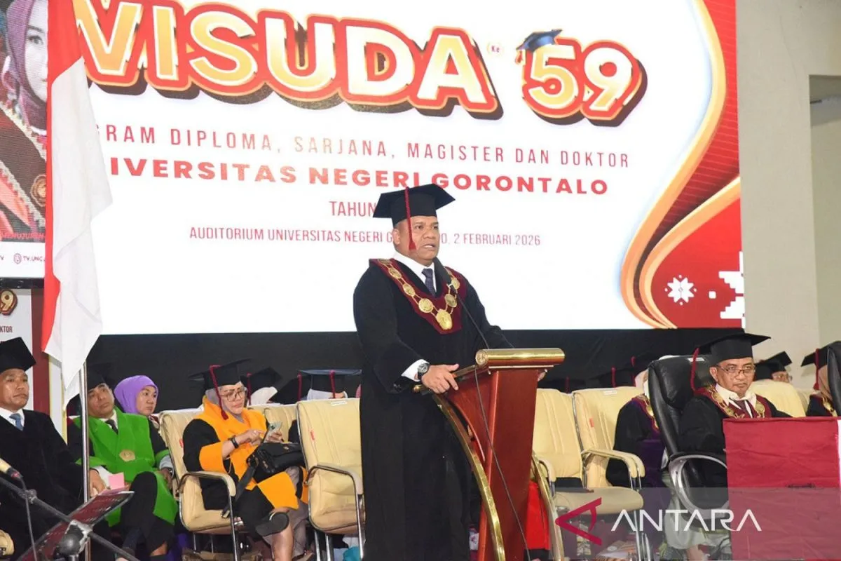Gorontalo (ANTARA) - Momen Wisuda ke-59 Universitas Negeri Gorontalo (UNG) bukan hanya tentang toga dan ijazah. Di tengah prosesi yang khidmat, sebuah kisah inspiratif lahir dari panggung wisuda. Rektor UNG, Prof. Dr. Ir. Eduart Wolok, ST., MT., IPU., ASEAN.Eng., menunjukkan kepedulian nyata terhadap pendidikan dan masa depan generasi muda Timor Leste, dengan memberikan kejutan berupa hadiah beasiswa penuh kepada salah satu wisudawan asing.