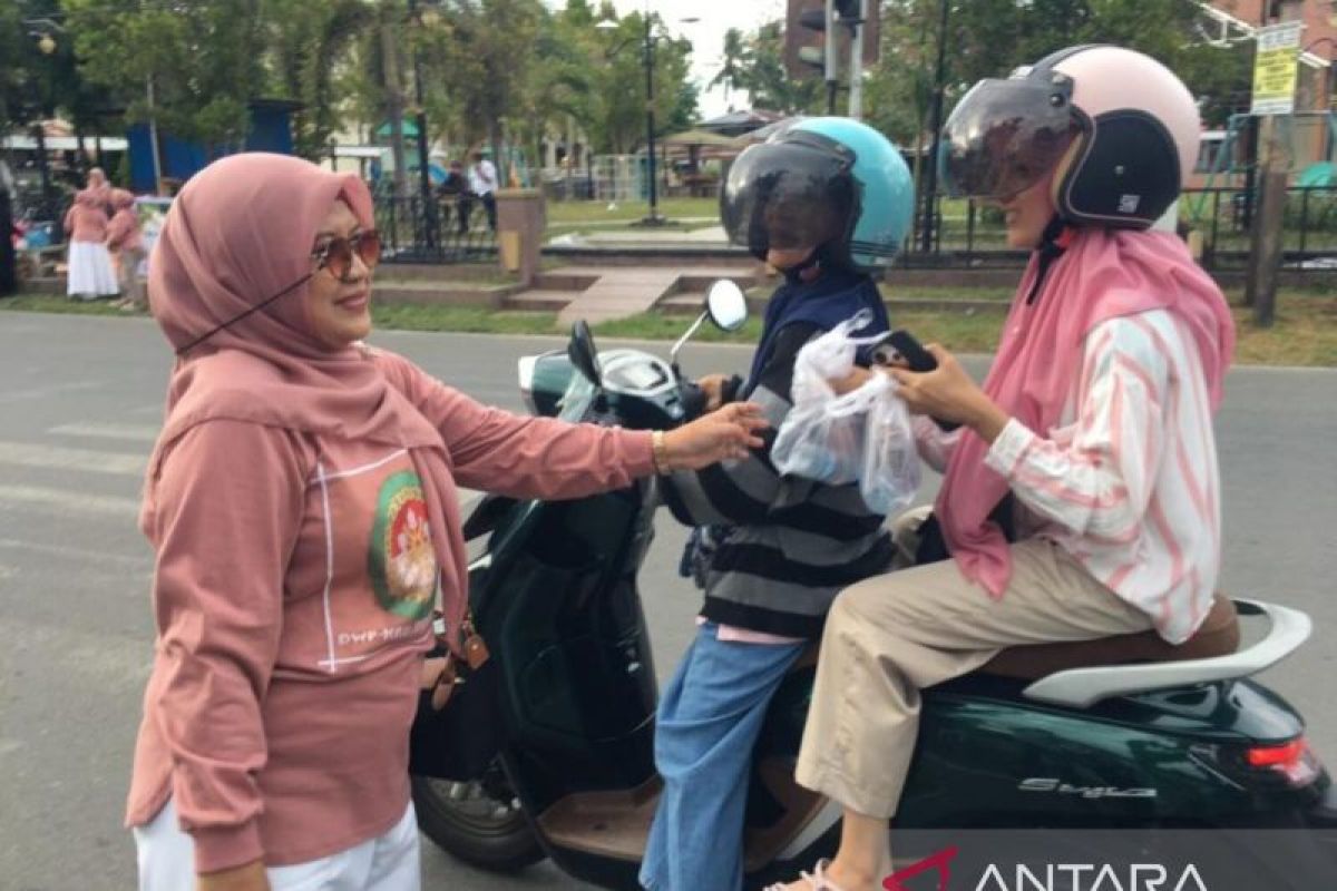 Kabila (ANTARA) - Dharma Wanita Persatuan (DWP) Kabupaten Bone Bolango menunjukkan rasa kepedulian sosial kepada masyarakat melalui kegiatan berbagi takjil di bulan suci Ramadan. Ratusan paket takjil dibagikan kepada masyarakat pengguna jalan di sekitar Kawasan RTH Kabila, Sabtu (14/3/2026).