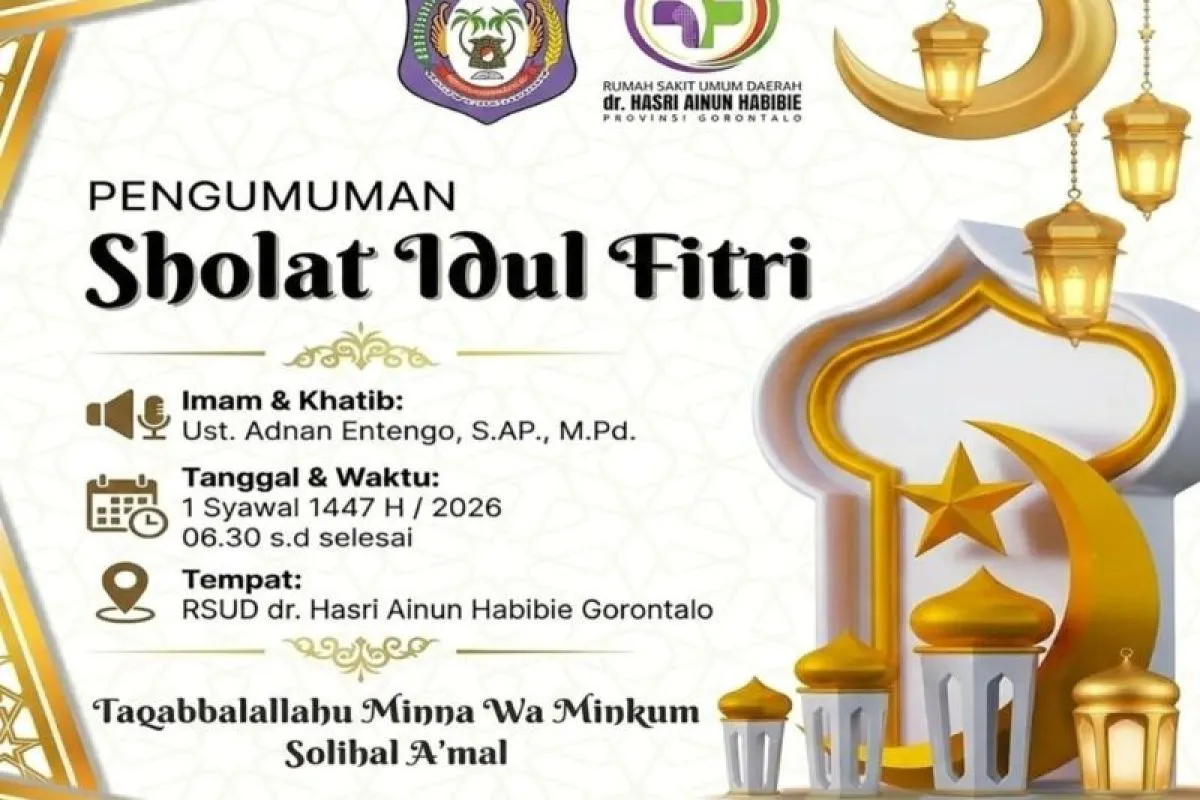 Gorontalo (ANTARA) - Pihak Rumah Sakit Umum Daerah (RSUD) Dr Hasri Ainun Habibie Provinsi Gorontalo memastikan akan menggelar shalat Idul Fitri 1447 Hijriah/2026 pada Sabtu (21/3), berlokasi di pelataran samping proyek pembangunan gedung baru fasilitas rawat inap.